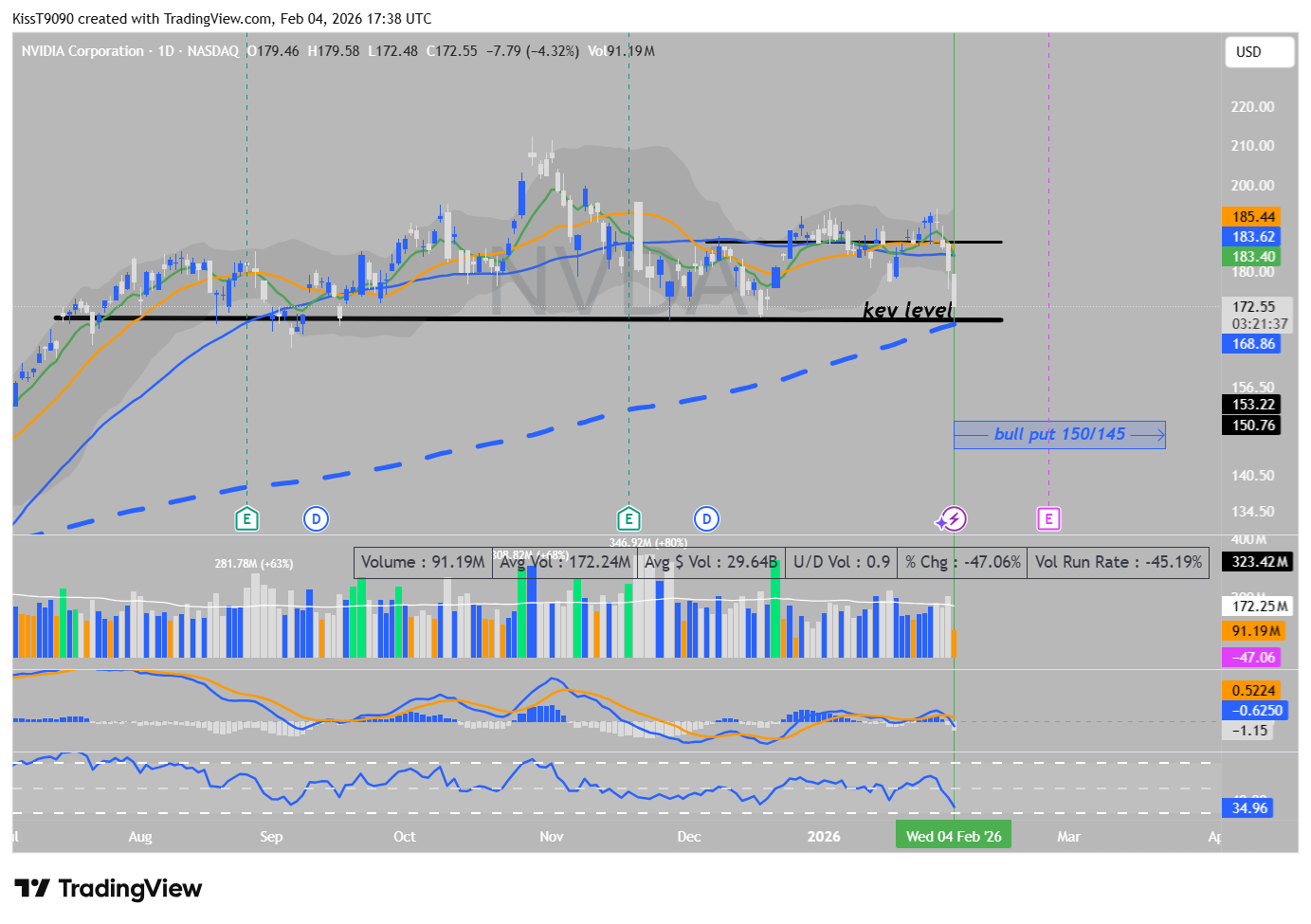 Suport confirmat la $170 + 200MA, 14% discount fata de pretul actual, outside of lower BB, RSI @35 cel mai scazut nivel din Apr.2025, delta -0.19 of sell put leg.