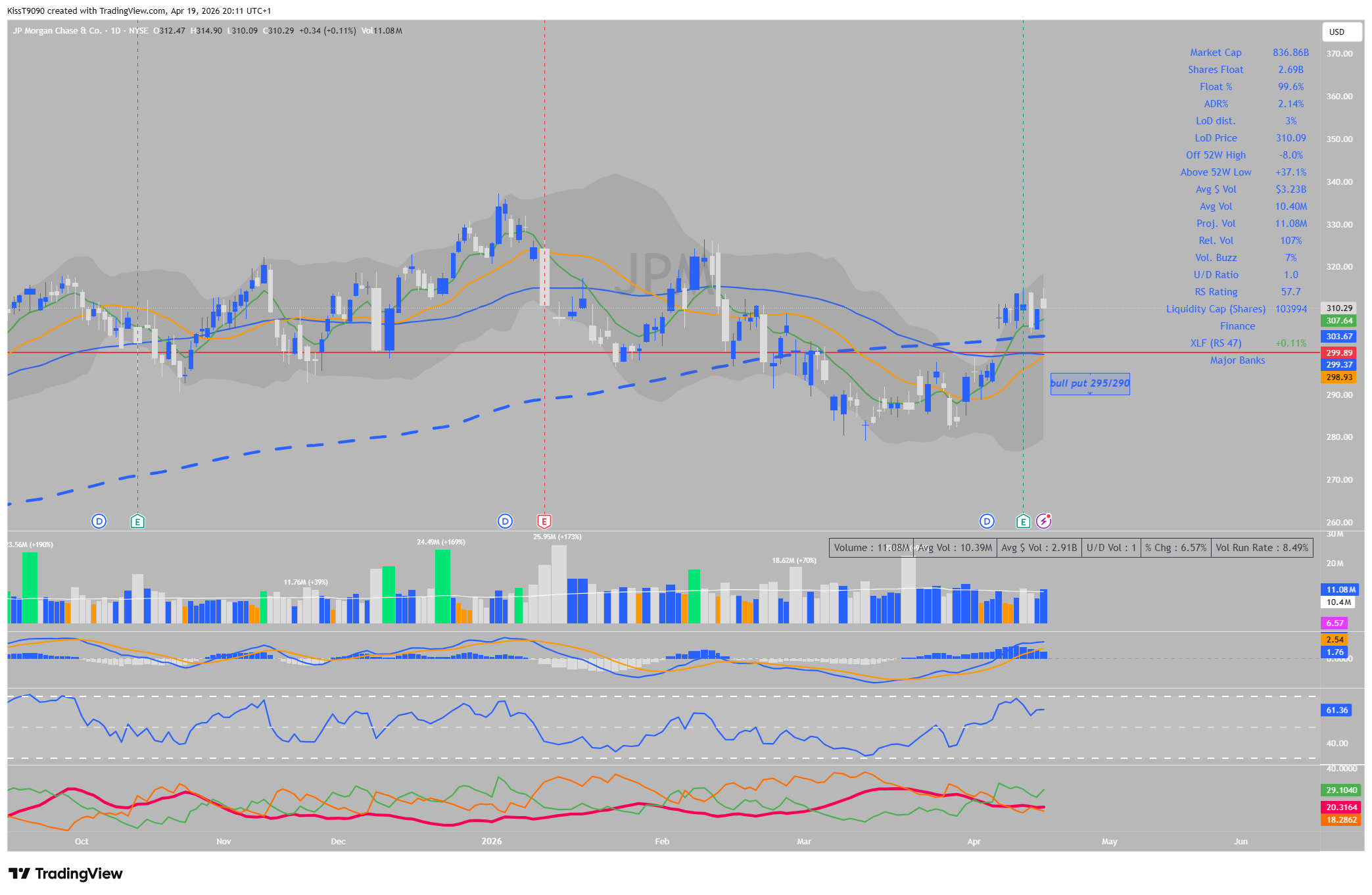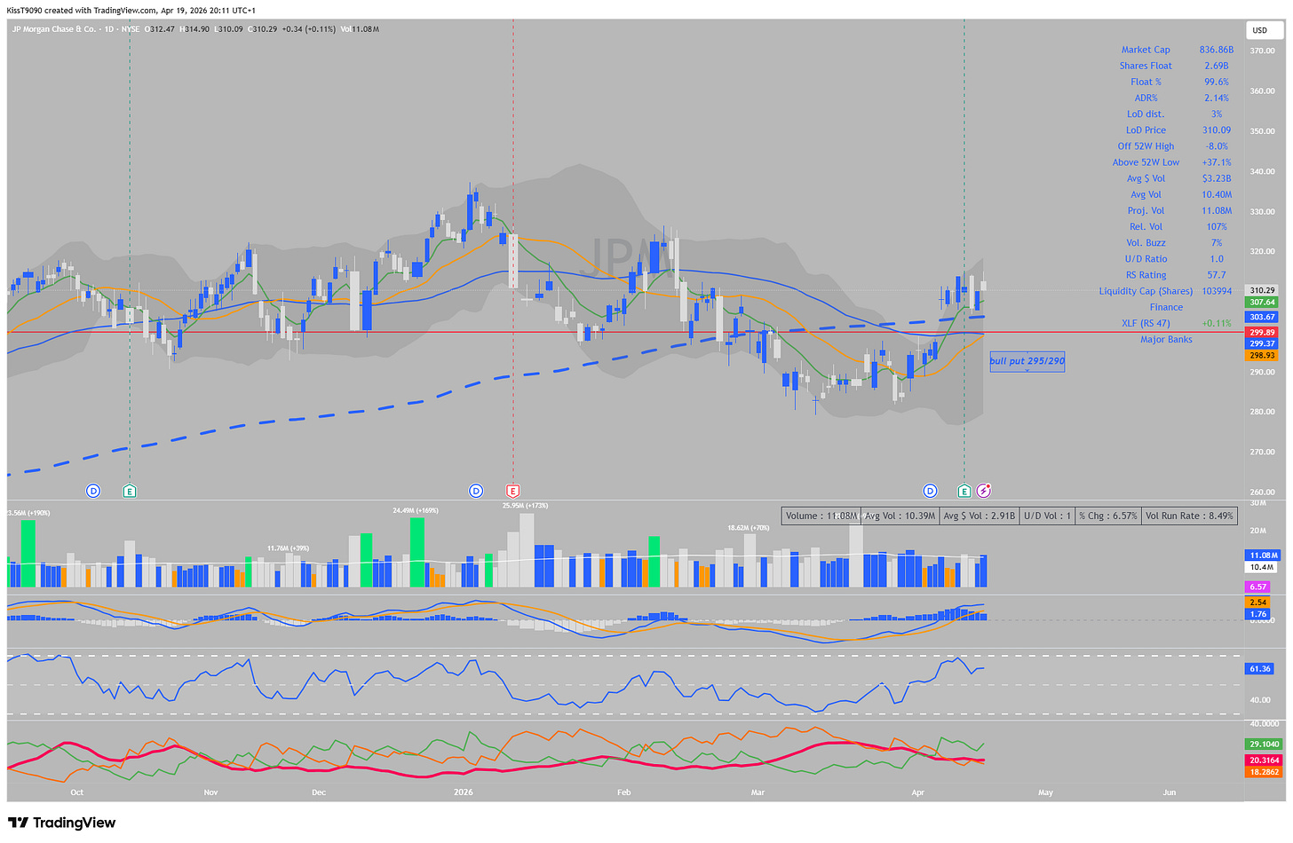 $JPM: Watchlist (așteptăm confirmarea stabilității la 310$ luni).