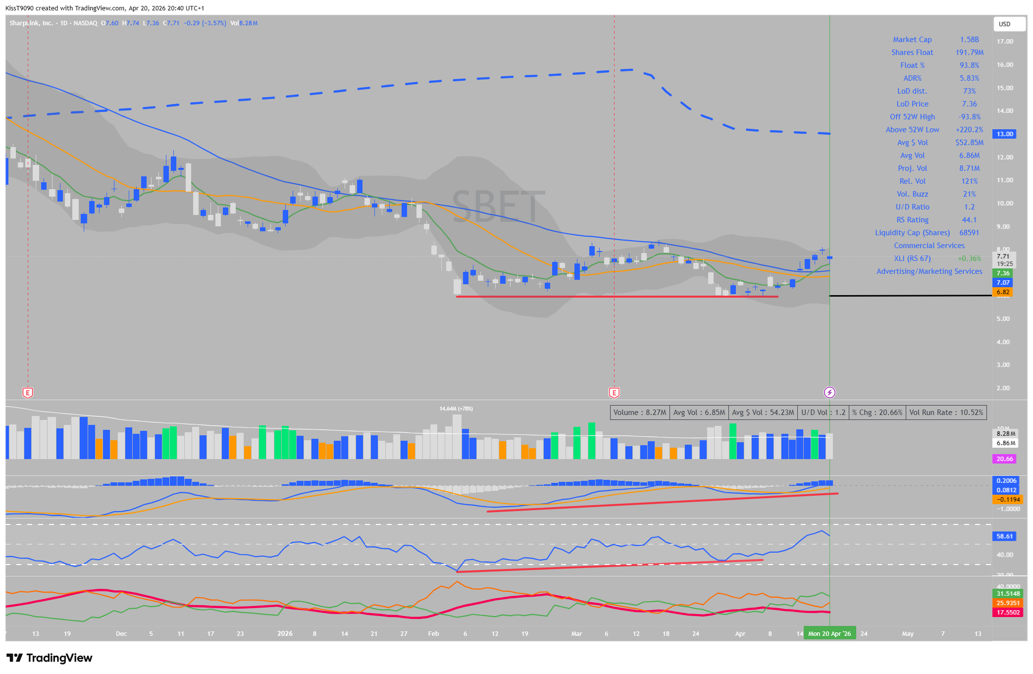 1. Contextul Tehnic: Semnalele de fund al sacului Deși trendul macro este descendent, pe graficul Daily am identificat o configurație rară de tip „Bottoming Process”. Divergența dintre preț și oscilatori (MACD/RSI) sugerează că forța vânzătorilor s-a epuizat. Când vedem 50 SMA (7.07$) trecând de la o pantă descendentă la una orizontală, știm că acumularea a început.