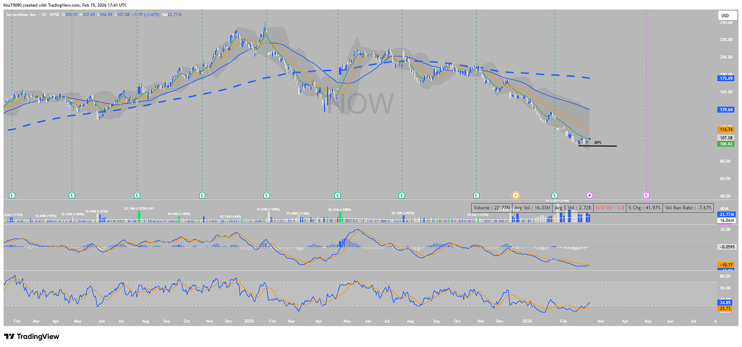 $NOW: Profităm de High IV Rank și RSI oversold pentru un spread sub 99$. Software-ul este în dizgrație, dar fundamentalele $NOW rămân solide.